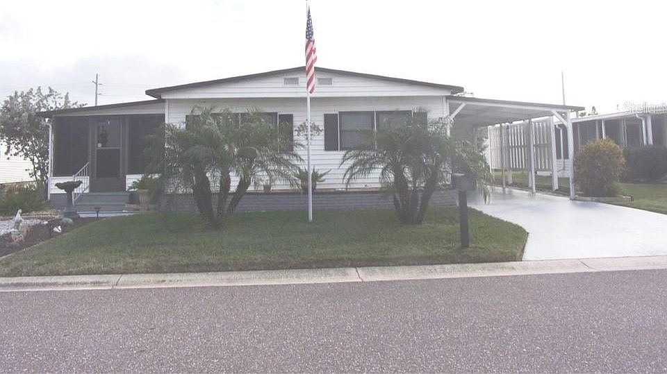 Welcome home! This immaculately maintained manufactured home has an open floor plan with high ceilings to give a spacious feel. Huge kitchen, large dining room, and opens to a large living room. Two lanais (one enclosed and one open to the back yard). Lots of built-ins for storage and closets. A guest bedroom and large master bedroom with 3 closets (one of them is a walk-in). All appliances plus the washer and dryer stay. Furnished. Backyard is good sized and has a lime and lemon tree. There is a detached workshop/laundry room off the carport. The carport can park 2 cars and there is an additional driveway on one side, so plenty of parking. This lovely community has everything your active lifestyle could desire. The Casa Loma community features include community pool, recreational center, billards room and shuffleboard courts. Low homeowner association fee is $75month. NO AGE RESTRICTIONS