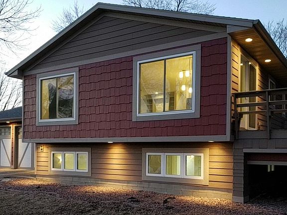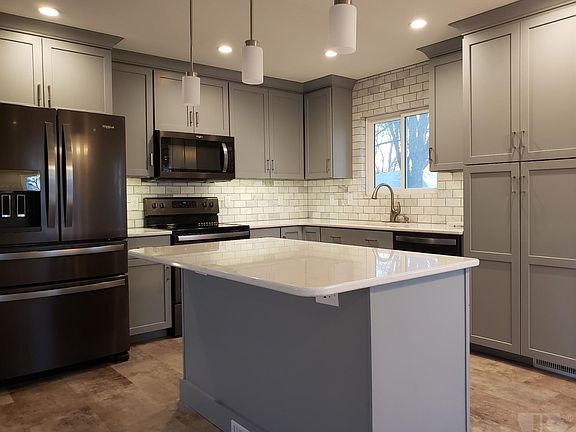 CRAFTSMANSHIP AT ITS FINEST! Immaculate split-level, contemporary-style home completely updated from top to bottom. The beautifully remodeled kitchen with custom cabinets, sleek Cambria countertops, brand new fingerprint resistant stainless steel appliances and gorgeous marble backsplash will easily make this one of your favorite rooms in the house. The open concept along with new windows offers ample sunlight all throughout the home. Sitting on a nice quiet corner lot, this 4 bedroom, 2 bath home also features: New Andersen patio door off the dining room to the 16' x 20' deck area. Stunning, custom built-in cabinets in the living room with Cambria top & marble back splash. Nicely updated bathrooms with marble & travertine tile, one with a large double vanity. New carpeting and waterproof luxury vinyl flooring throughout the entire home. All new energy star windows. Multiple living spaces along with a wood burning fireplace downstairs. Great curb appeal from the updated prefinished impact resistant no fade 30 year smart siding along with unique architectural details. Oversized, 2-stall attached garage with lots of storage space. High-quality materials used to take this average home to a modern, one-of-a-kind listing here in Buffalo Center. Located just a few blocks from downtown. Completely move-in ready to make your home TODAY!