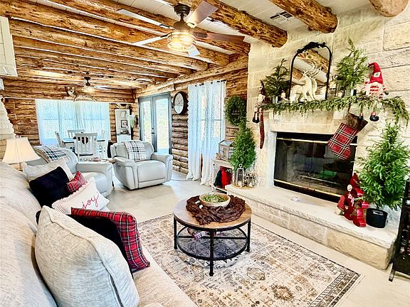 Drive through the private gate into your luxury oasis of comfort, peacefulness and timeless design. Beautifully renovated, 3bdrm 2.5 bathrms, unique log home boasts high end attributes. Rustic character meets modern style. From the moment you arrive, you’ll be drawn to the peaceful atmosphere, expansive porches; perfect for morning coffee, relaxing evenings, and entertaining guests. You have plenty of room to lounge & enjoy the tranquil outdoor setting. Inside, the shiplap wood walls along with stunning exposed logs create a cozy, inviting atmosphere throughout. The spacious living area is anchored by a gorgeous stone fireplace and flows effortlessly into the bright, open kitchen featuring crisp white cabinetry, abundant granite counters, breakfast bar and beverage space ideal for gathering. Wonderful dining area with double glass doors opening to a grand covered porch. Natural light pours in through the home, highlighting unique textures and custom finishes. Retreat to the serene, downstairs primary bedroom adorned with a bay window seat, providing a relaxing feel, complemented by an en-suite spa-like bathroom. A blend of farmhouse elegance and cabin warmth make every room feel cozy. Stunning tile and real wood floors throughout. This one-of-a-kind property offers the perfect combination of comfort, character, and curb appeal, ready to welcome you home. All 3 bedrooms are oversized with room for sitting areas in each. No known restrictions. No HOA. No city taxes. Bring your livestock to enjoy the 3+ac, with perfect area for arena with sandy soil in place, fully fenced, cross fenced and 3 stall shed row barn, plus equine vet and farrier live next door. Plenty of parking. Also has a quaint shop for all your projects! Nestled in Peaster ISD and just 10 minutes from downtown Weatherford.