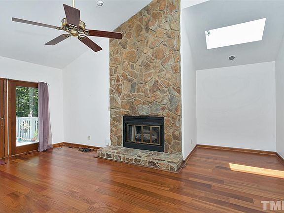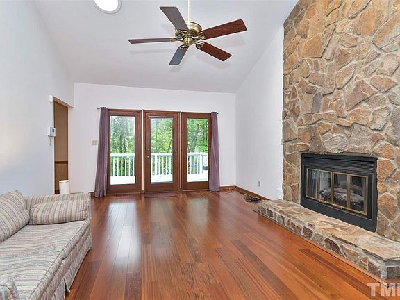 Contemporary home in fabulous location tucked away wooded in a cul de sac, minutes from shops & highways Natural areas,birds and critters to see from your screened porch where you can savor morning coffee and dine enjoying illuminated yard by night. Fresh neutral paint inside and you'll notice 5 solar tubes & 2 skylights along with a magnificent stone gas fireplace and stunning Brazilian Cherry flooring. Kitchen is ready for your magic touch and home is priced accordingly. Move in ready!