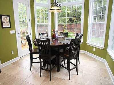This was the original model home in Harmony. Home has upgrades throughout -- large designer kitchen with top of the grade SS appliances - quiet SS dishwasher, SS convection oven, dual SS ovens, Gas cooking range with glass cook top for easy cleaning 2 fireplaces - one in living room and one in library give you ample of cozy places in home to enjoy that hot chocolate with kids, morning coffee with family or when entertaining friends 3 car garages - all connected to home to protect your cars, bikes and give you complete privacy Ground / first floor - 3 car attached garages, library with fireplace, formal dining room, home theater wired living room with fireplace, large designer kitchen with breakfast area large enough to be your dining room, laundry room, guest bedroom with attached full bath and a half bath Second floor - Large master bedroom with his and hers walk in closets, large soak tub and dual sinks, 3 additional bedrooms with 2 full baths and a large home theater wired recreation room Third floor - large 3rd floor sanctuary/retreat/bedroom with a full bath. Backyard - Private flat backyard with large deck and a screened porch with ceiling fan and cable outlet for your superbowl in your backyard parties. Deck has a gas outlet for your grill as well lawn - irrigation system with multiple zones Other notable features - high 11' ceilings, 2 story foyer, dual climate control zones, 2 minutes walk to luxurious community pool, play area and clubhouse. Location - walking distance to top rated elementary school and connected via bike path to Cary greenway system. 1 minute drive to 55 yet in a secluded nestled in nature community.