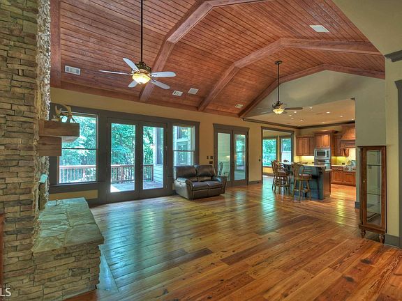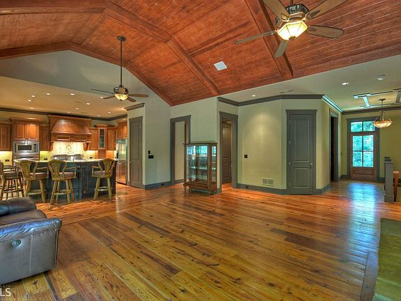 Perfection personified in this Craftsman style home on 10.27 wooded acres. Located in the gated community of The Georgian Highlands.This home is 10 min. from Jasper Ga. regarded as Georgia's first Mountain Town. Conveniently located between Canton & Ellijay. Totally secluded home in a very pri. setting. Home boast heart pine floors, lofty 10 ft. ceilings, Great room w/ a warm stacked stone FP, French doors leading to a screened porch and deck for grilling, overlooking private acreage with a creek. Kitchen w/custom cherry cabinetry, solid surface counters. Bar for familygatherings. stainless steel appliances views into great room. Spacious master on main with master spa. soaking tub. steam shower, large walk-in closet. 1/2 bath just off kitchen area. Terrace level has 10 foot ceilings. Lg. Den/Rec room w/ bar area, 3 additional bedrooms and 2 guest bath. Attached 2 car garage with a bonus room and permanent attic stairs, great for a pri. office space. Truly a Big Canoe value much closer to town with minimal HOA fees!!