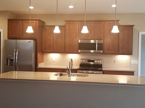 This beautiful newly constructed home in West Lafayette's newest low maintenance community, Hartwood Village, features 1,750 square feet, 3 bedrooms, 2 full bathrooms, open concept living, 9' ceilings, a large great room, covered patio, large kitchen island with seating, custom cabinetry, crown molding, solid surface counter-tops, ceramic tile back-splash, stainless steel appliances, pantry, walk-in closets, master bath en suite with dual vanity and walk-in shower, California closet in master, landscaping, sodded yard, and an irrigation system.