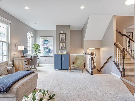 Chic contemporary 3 bedroom townhome is only 4 years young. Lots of daylight through large windows. Well appointed kitchen features stainless appliances, island, and yards of counter space. Plentiful cabinets and big pantry make life good for the cook and the guests. Spacious owners' suite includes walk-in closet, awesome bathroom w double vanity, separate soaking tub and glass walled shower Enjoy the convenience of the upstairs laundry.Engineered oak flooring on first,plush wall-to-wall in bedrooms. Relax and listen to the creek from your peaceful 18' maintenance-free Trex deck. Retractable privacy screen is included. Impeccably maintained neighborhood. Very sociable community holds annual block parties, picnics, and food truck events. Great location to get everywhere including downtown, airport, restaurants, shops at Settlers Ridge, Ikea, Market District, and specialty stores at Robinson Town Center.