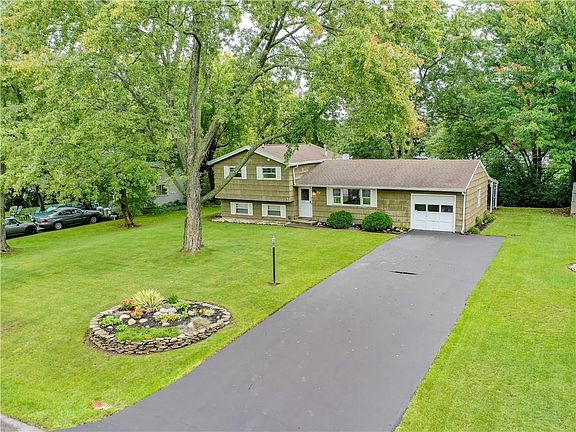 Fantastic Split Level on a great neighborhood street in Henrietta. The interior boasts a living room, a large eat-in kitchen with plenty of cupboard and counters space, double sink & backsplash, plus there is a dining room! The lower level has a large bedroom, a cozy family room, bath and a laundry room. Up there are 2 bedrooms and full bath. Outside you will love the garage, the covered patio overlooking your wonderful private tree-lined backyard, & a shed! It feels like the country, yet close to everything Henrietta has to offer. Make an appointment today! Delayed Showings until 10/12 11am. Delayed Negotiations until 10/18 noon. Open House 10/16 12pm to 2pm