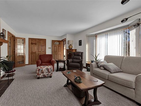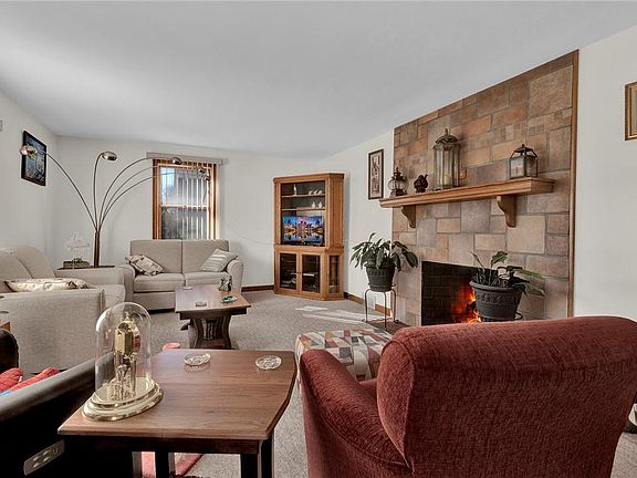 A graciously sized living room with a decorative fireplace and hardwood under all the carpets, this one-level living is deceivingly large.
