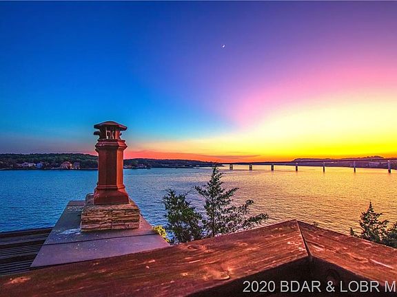 It has been over 35 years since the "Residence at Arrowhead" was on the market. Distinctly positioned at the sought after 16-mile marker on the beautiful Lake of the Ozarks featuring 400 +/- feet of private natural limestone shoreline. A stunning view of the community bridge and the main channel and 180-degree views among the mature trees and grounds offering privacy and steps away from the water's edge. The "Residence at Arrowhead" provides 5,200 sq. Ft. of living space with four bdr., and 3.5 baths. The master suite has generous space with comfortable seating in his and her en suites and walk-in closets. The designer gourmet kitchen features Viking Appliances with a 400+ bottle climate-controlled wine cellar and an affluent billiard room with a private deck overlooking the waterfall. Plus the Guesthouse is 1,100 square feet in addtion to air fresco kitchen and 2-level Tuscany deck. The gently heated driveway has ample parking - remodeling completed in 2006.