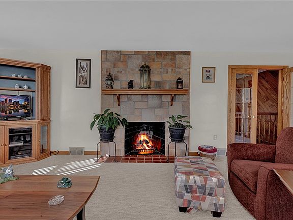 A graciously sized living room with a decorative fireplace and hardwood under all the carpets, this one-level living is deceivingly large.