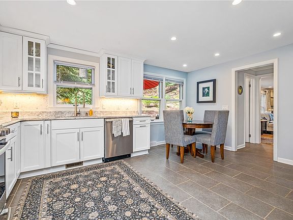 This beautiful 4 bedroom, 2 full and 2 half bath home is stunning and offers a ton of character. There are gleaming hardwood floors throughout the home that have been refinished. The custom eat-in kitchen has been completely renovated with new appliances, granite counters and porcelain flooring. The spacious dining room offers custom built-in corner curios, crown molding and plenty of natural light. The family room boasts a wood burning fireplace, a newer wood casement window and access to the lovely private rear patio. The main hall bath has marble counters and flooring, plus the primary bath was just redone with Corian counters and granite flooring. The finished lower-level offers a great space for an office and features a powder room and a 10x9-foot laundry room. The private back yard is a wonderful place to entertain & enjoy fires with guests. This home is situated on a cul-de-sac and is convenient to Ross Park mall, restaurants and downtown Pittsburgh.