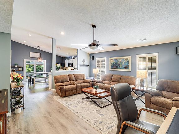 This charming, renovated home is conveniently all on one-story and backs up to a greenspace with a tranquil pond. The open floor plan offers a large family room with a vaulted ceiling and an updated kitchen (new appliances in 2019) with a custom island with benches allowing plenty of sitting space. The laundry room and walk-in pantry off the kitchen both uniquely have custom shelving. A sliding glass door off the kitchen opens out to a huge, fenced-in backyard with a Jacuzzi hot tub and a professionally built 10x12 shed with a work bench and loft storage. There are three bedrooms which includes a spacious master with a vaulted ceiling, a walk-in closet, and a private bath. This wonderful home is in a prime location right down the street from a park, and close to dining, shopping and otherconveniences. The neighborhood offers a community pool, a playground, lots of green space and walking trails.