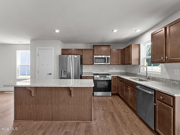 Completed home- move-in ASAP! The Grand Cayman. Upon entering the home, 2 beds and full bath are tucked perfectly off of the foyer area creating privacy for overnight guests. Continue on to the open concept great room and kitchen featuring LVP flooring, large island, granite tops and all SS GE appliances, including refrigerator. Coffee break? Take your favorite novel and head to the rear covered porch for a little R&R! Your private owners suite features a large walk-in closet, full bath with shower and double vanity. A true must see!