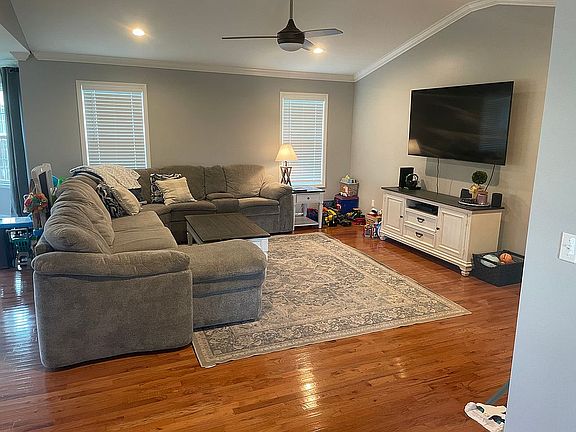 This lovely home is an open concept home, hardwood floors, upgraded light fixtures with recess lighting, new crown molding, newly painted, new carpet installed in the bedrooms. Kitchen has new granite countertops with backsplash and newly painted cabinets. Bathrooms have newly installed vanities. Laundry, bathroom and kitchen is tiled. It has a large privacy fenced in backyard with new landscaping.