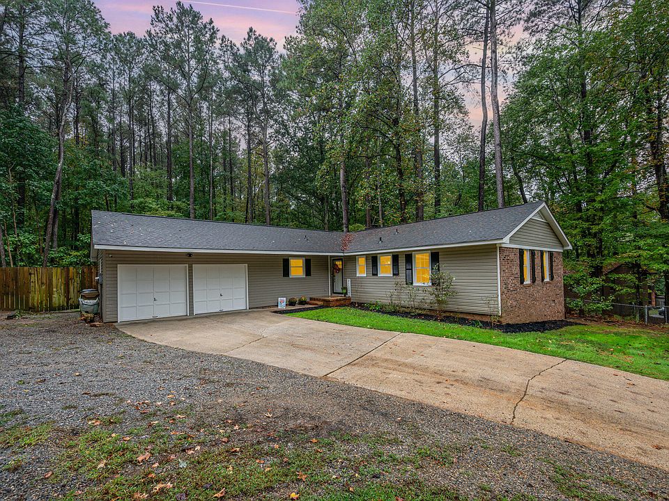 Fantastic 3 bedroom ranch on a cul-de-sac Welcoming foyer with drop zone greets in this open plan. Formal dining open to remodeled kitchen with sunny breakfast and large breakfast island. Spacious family room with fireplace with beautiful brick hearth opens to extra large new trex deck, partially covered overlooking private fenced backyard that is home to a shed and chicken coop. Three generously sized bedrooms, lvp flooring throughout, new doors an oversized garage with pull down stairs and an encapsulated crawl space are just a few of the features of this well maintained home in Garner. All this on a great culdesac lot. Convenient to downtown and major roads, shopping and restaurants.