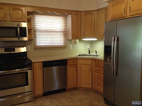 COMMUTERS DELIGHT..Close to NYC BUS! LOADS OF ROOM in this MOVE-IN condition home. Enter to Large LR, UPDATED EAT-IN KITCHEN with SS applicances , formal dining area with Sliding Glass Doors to BIG DECK, beautiful backyard with above ground pool. Second level has 3 nice size bedrooms and NEW FULL BATH. All HARDWOOD FLOORS. Ground level enter from garage or backyard to FAMILY ROOM, NEW FULL BATH, and big closet or storage room. FINISHED BASEMENT is a great 'man' cave, or playroom, or office! Separate laundry room and separate Utility room. Ground level and basement are all ceramic tile. Newer HEATING SYSTEM, WATER HEATER, AND CENTRAL AIR.. Fenced in yard, sprinklers..larger lot 59x106. Great House and Price ! Come See...