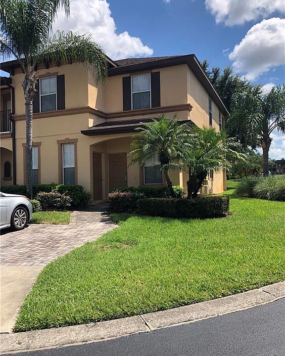 BUYERS FINANCING FELL THROUGH! Looking for a successful income producing vacation rental? Look No Further! This beautiful and immaculate Corner Unit comes FULLY FURNISHED! Spacious Step living room, dining room and kitchen combine for a great gathering spot. The Master Bedroom downstairs has an additional entry to the outside. The upstairs Master Bedroom has a beautiful patio to relax on. There is also a laundry area upstairs. This beautiful resort is minutes from Disney World and other major attractions. Regal Palms is a gated community and features an expansive clubhouse with Frankie Farrells Bar and Grill, a fitness center, an arcade, a spacious resort pool with water slide, lazy river, zero-entry pool, sand volleyball court, a pool side tiki bar, and a sundry shop. The monthly HOA amount also includes external pest control, 4 Cable TV Boxes, WiFi and Phone. Future Booking will convey if kept with same management company.