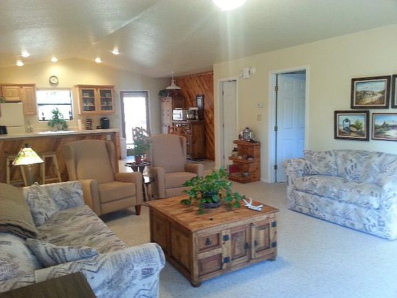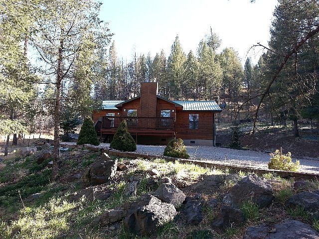 CABIN IN THE WOODS!! A sweet spot on a quite cul-de-sac with 3 bedrooms, 2 baths, open living, kitchen and dining areas. Two nice decks for enjoying great weather and local wildlife. Mostly furnished, septic is permitted for 2 bedrooms. Has refrigerated air conditioning.