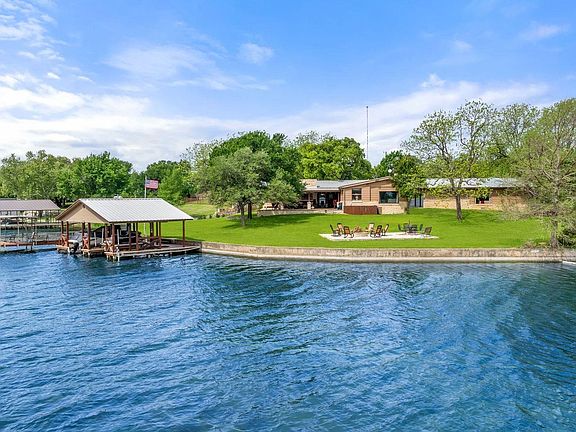 Nestled along the serene shores of Inks Lake in the heart of Texas Hill Country, 104 Bluebonnet Circle offers an unparalleled waterfront lifestyle. This amazing lake house is set on a sprawling 1.38-acres, with 253’ of stunning open waterfront inviting endless recreational activities, swimming, boating, fishing, or kayaking, paddle boarding or jet skiing on the consistent-level, 831-acre Inks Lake. The expansive covered patio, equipped with an outdoor kitchen, is perfect for entertaining, while the private boat house with a separate fishing dock elevates your lake experience. Lush landscaping and a fire pit create an idyllic setting for starry evenings. The Main House is uniquely designed around the original fishing cabin with the original tongue and groove purple heart cedar, it is so much fun! Now fully updated and just perfect for family gatherings, featuring 4 bedrooms, 3.5 baths, gourmet kitchen with custom cabinetry & granite counter tops, large living//dining area with fantastic lake views. A separate Guest House, features a full living and kitchen space as well as full bedroom and bath, providing privacy for guests. Inks Lake has a wonderful proximity to wineries, Inks Lake State Park, Long Horn Caverns, Falkenstein Castle as well as Lake Buchanan and Lake LBJ for tons of fun local activities.