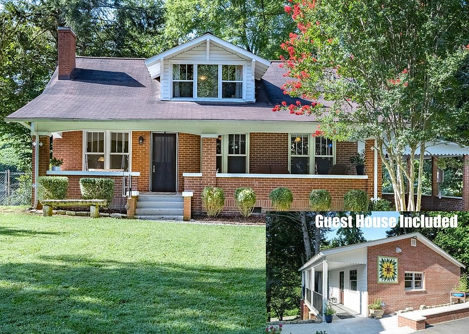 Nestled in downtown Murphy, this enchanting Craftsman house, originally built in 1939, boasts timeless charm and modern comfort. Meticulously remodeled while preserving its distinctive Craftsman style, the main home and guesthouse harmonize seamlessly to create a unique living experience. Step inside the main house to discover the heart of the home with a large Great Room adorned with a brick fireplace. Glass French doors connect to the kitchen, a culinary haven equipped with SS, wall oven, gas cooktop, granite, custom cabinetry, and a cozy eat-in dining area with lots of windows for plenty of light. Down the hall are two comfortable bedrooms, which share a lavish bathroom featuring a clawfoot tub, granite-topped vanity, and tasteful tile accents on the walls and floor. Ascend the stairs to the transformed attic space, hosting a spacious Master Bedroom with a half bath, office space and a walk-in closet complete with built in drawers. Off the kitchen is a door that leads to your finished basement offering a versatile family room, full bathroom, bonus room for your creative pursuits, a generously sized laundry room, and a well-organized pantry. Outside, you'll find an attached carport and fenced backyard with a guesthouse, thoughtfully redesigned to complement the Craftsman theme. It features a welcoming Great Room incorporating a functional kitchen, a private, cozy bedroom & bathroom. Unwind on the porch in your soothing hot tub. This home is an idyllic retreat in downtown!