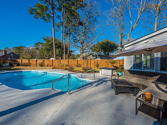 Back on Market. Finance fall-thru = YOU win! Priced BELOW appraisal. Adorable home, light & airy coastal feel. Many quality updates inside & out. Open main living & dining spaces w inviting fireplace. Sunroom w big views of your privacy-fenced back yard oasis, patio & grill space, pool deck space, and your own in-ground pool! The private Master Bedroom's updated barn-door feature opens to your renovated in-suite master bath, walk-in closet, WC, and big shower. The 2nd & 3rd bedrooms are split right. Stainless steel kitchen appliances & numerous updated touches = a fresh look, from new lighting to white cabinets, pull-outs, and more! Great yard w multiple palms, crepe myrtles, bushes, plants & flower bed features - rich Lowcountry beauty from early Spring onward. A truly special property!