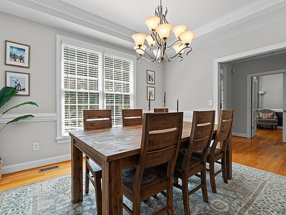 This charming home is conveniently located adjacent to Sunset Ridge Golf Community in Sunset Ridge North! It's situated on a picturesque .33-acre wooded home site. The 1st floor home office with glass French doors makes a valuable addition for those who need a dedicated work space. The fully equipped kitchen boasts custom cabinetry, granite countertops, mosaic tile backsplash, recessed lighting, and stainless steel appliances, including a gas cooktop and refrigerator. Stylish pendant lighting illuminates the center island that provides additional counter space and storage. The adjacent breakfast nook will accommodate a large dining table. The owner's retreat offers a double tray ceiling and the adjoining spa bath features diagonally laid tile floors, a dual vanity with custom cabinetry, a jetted soaking tub, and a separate shower with tile surround. The family room, complete with crown molding, a gas log fireplace with a marble surround, and built-in bookcases, provides a warm and inviting space. The spacious bonus room offers versatility, and an unfinished walk-up attic would be perfect for future expansion. A relaxing screened porch overlooks the wooded backyard. Additional highlights include front and back staircase, butler's pantry, hardwood floors, tray ceilings, crown molding, chair-rail, and the washer and dryer are included. You'll enjoy easy access to major highways, shopping, dining and schools!