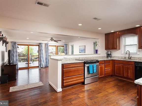 Waterfront Oasis! Originally a 3 bedroom 2.5 bath home in water oriented community of Rumsey Island. Sellers will consider converting the 2nd bedroom back into 2 separate bedrooms if buyer would like. Private dock with 12, 000 lb boat lift. Beautiful hardwood floors flow throughout the main level and lead into gorgeous kitchen with lots of cabinets, granite countertops and stainless steel appliances. The open kitchen welcomes you into a large family room addition with 2 sliding doors leading to the 18 x 17 lower level rear deck. Great for entertaining! Enjoy the water views from your master bedroom addition with a private 17 x 10 covered balcony and master bath. Loads of storage in the master bedroom. Second floor laundry closet. Great 16 x 8 shed for extra storage or workshop!