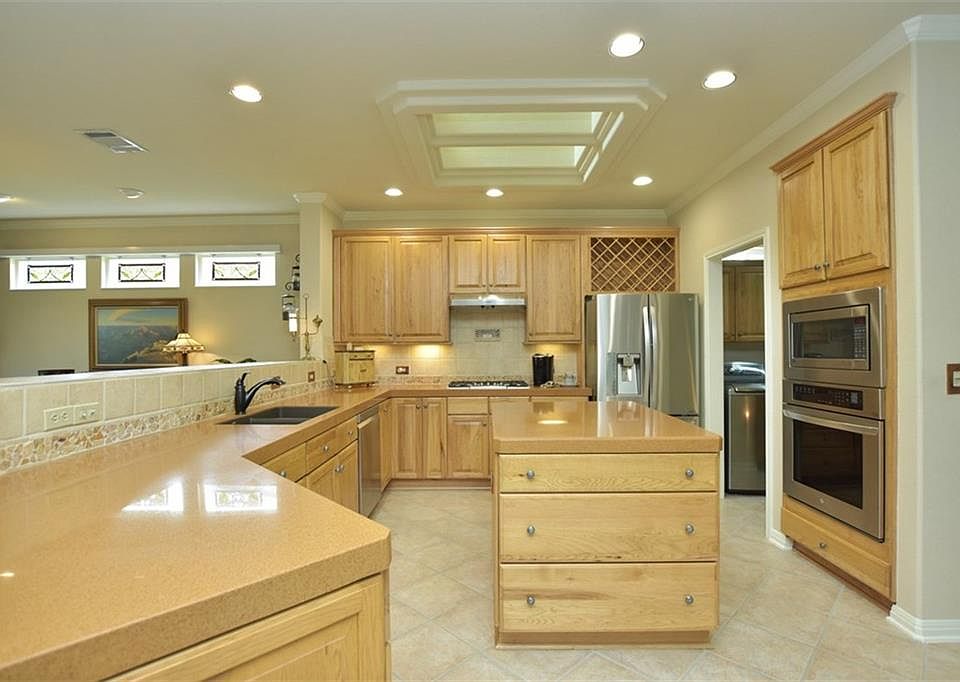 Happily ever-after begins at this Sun City Texas Burnet hugging a cul-de-sac nature preserve in the heart of this active-adult resort. The wide-open Island Kitchen has been customized for maximum storage, while upgraded stainless appliances and an expanded Utility Room are ready to roll. Granite transforms the plentiful counter tops. A fun Corner Office views the scenic back yard, while off the private Master Suite resides a soothing Hot Tub pergola. Don't miss the Guest/Hobby Room with Murphy Bed!