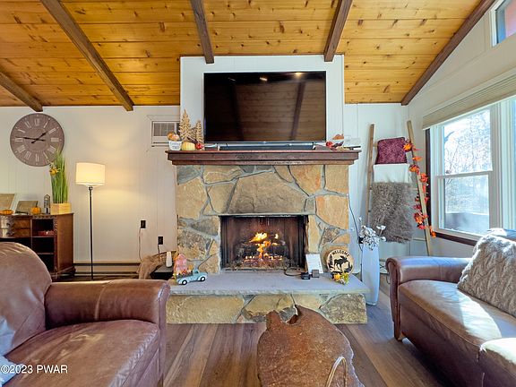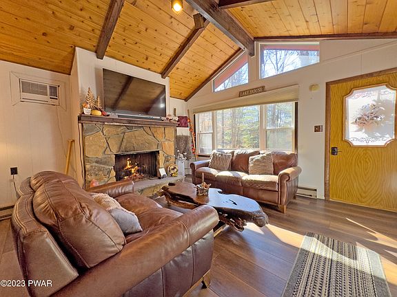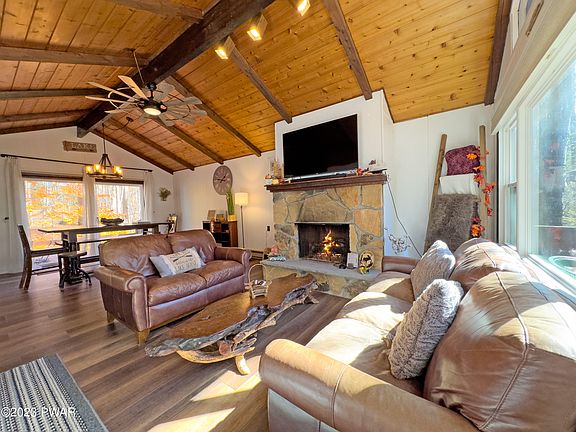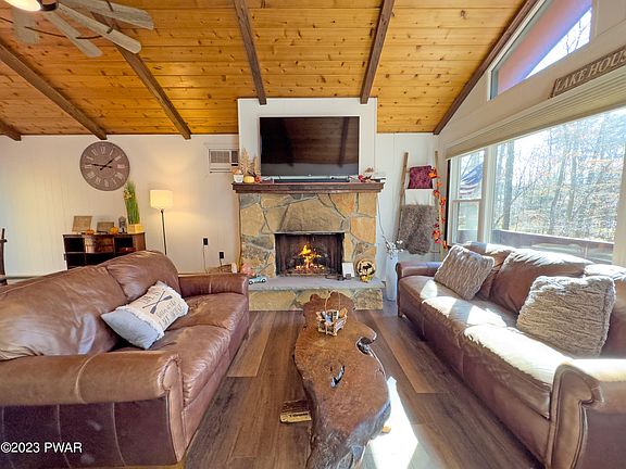 Come check out this recently renovated, mostly furnished, rustic retreat located on a no-outlet road in the Hideout - a four season, amenity-packed, gated community nestled in the Pocono Mountains. The home is already setup as a 5-star short-term rental, so you can start collecting income right away! It's in a prime location, being close to several amenities including the main clubhouse, outdoor pool, tennis courts, and ski slope. There's plenty or room for entertaining here with the 5 bedrooms, 2 full baths, 2 living rooms, 2 kitchens, front and back decks, firepit area, and large driveway. Upgrades include granite countertops in both kitchens, new flooring, new roof and windows, and propane log fireplace.Community amenities include a 190 acre powerboat lake with two sandy beaches, several smaller lakes, private golf course with tiki bar and restaurant, ski lift and lodge, 2 heated outdoor pools, mini golf, an indoor sports complex with indoor tennis courts, fitness center, game rooms, sauna, and library, 250 acres of woodlands, multiple parks, and much more! Come take a look today!