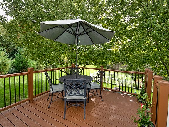 This is the home you have been waiting for, located on a cul de sac with a large private backyard that backs to green space. This traditional colonial has a grand 2 story entryway with gleaming hardwood floors. The first floor includes a spacious dining room, sitting room which could also be used as an office, family room with gas fireplace, large laundry room, kitchen with stainless steel appliances, custom cabinets, quartz countertops and a bright and airy breakfast area. Right outside is a maintenance free trex deck that overlooks a gorgeous backyard. Upstairs is a master bedroom with an ensuite master bath that includes soaking tub, walk in shower and double vanity bowls. Generous sized bedrooms complete the upstairs. Finished basement includes sitting area, exercise room, extra cabinets plus room for a freezer and refrigerator. The extra large 3 car garage has plenty of room. Adams Ridge neighborhood includes pool, clubhouse, tennis and basketball courts. Close to major roads.