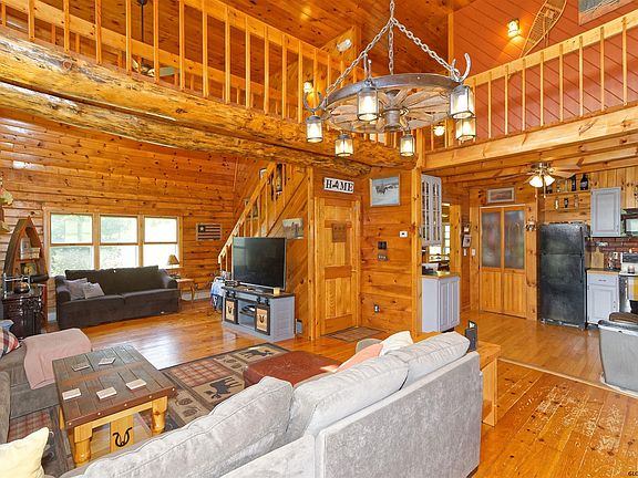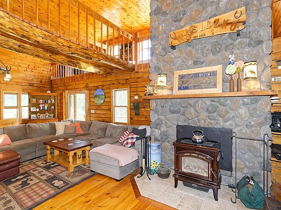Beautiful Lincoln Log home situated on a sweeping 8.8 acre parcel, with frontage on 2 roads ( Brownell and Rt. 74). This well maintained and inviting home features a floor to ceiling stone fireplace with wood stove insert in the open great room. Home has 2 updated bathrooms, formal dining room, and 2 porches ( 1 on front, and a beautiful screened porch overlooking the back yard.) Home also has generous sized bedrooms, great catwalk on 2nd floor looking over the first floor and an office nook area. The walk out basement features a nice sized workshop, a bar and game room and plenty of storage. The property has a 2 car garage with carport, and home has metal roof. This home awaits its new owners for years of memories to be made.