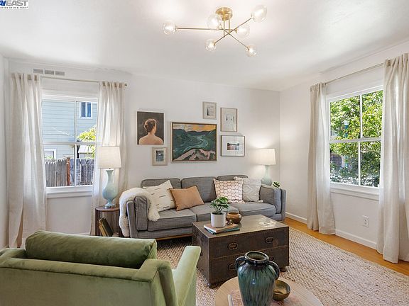 104 Brush is a stylishly updated cottage home located in the vibrant West End of Alameda. Built in 1941, this 2 bedroom, 1 bath single-level duet-style condo feels spacious and bright. This property is located in the well-loved and well-built Woodstock Community where each home is owner occupied. The light filled living room with its wood floors is comfortable for gatherings and repose. The 2 bedrooms are spacious and contain generous closets. The full bath has been refreshed with newer tile floor, updated vanity. The stunning kitchen has quartz counters, sleek tile backsplash and space for dining. Just beyond is the charming mudroom/laundry area which leads to the lovely landscaped backyard. The yard is the ideal place for gardening, play and outdoor dining. The versatile 143sf studio can be used for office/storage/workshop/gym. Location is prime: close to SF Ferry, Alameda Landing, Farmer’s Market, Cafés/Restaurants on Webster, Schools, Waterfront Parks, Spirits Alley/Restaurants/Cafés on the Base, and more! This a gem of a property that is not to be missed!