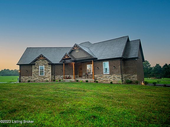 MOTIVATED SELLERS!! This beautiful 5.01 acres is deemed agriculture and allows the owner to have horses and livestock as well as a barn. Fencing around the property is also allowed. Updated with a beautiful walk-out finished basement. Welcome to 104 Bryson Drive, located in historic Bardstown that has been voted #1 small town in America and Bourbon Capital of the World! This immaculate 3 bed, 3.5 bath, custom built ranch, with 3 car attached garage, offers 3988 sq ft, sitting off the road with a gated entrance on 5 acres that backs up to a private oasis! Finished Built in November 2022, in this great neighborhood, which is only minutes away from all amenities you could ever need. A split floor plan, with Luxury flooring through out, and a beautiful open Kitchen with custom cabinetry and special LED recessed lights through out, with outside lighting that sets automatically to come on at dusk, and private views of woods and farmland on your Huge concrete patio porch will make you feel right at home!