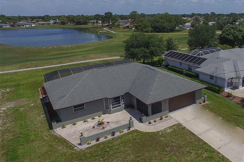 There's a tune you'll start singing when you enter this attractively renovated home! Your eyes are immediately drawn to the pocketing sliders that resemble a "wall of glass." It feels as though the golf course and pond are part of your living room. When you tear your eyes away from the view, you notice the inviting pristine pool in the elegantly pavered, oversized screened lanai, and you can see yourself entertaining or just relaxing. Then you focus on the inside - a completely open, newly painted living space with a walk out bay window and vaulted ceilings, adding even more volume, large ceramic tile flooring, designer and recessed lighting, and a chic kitchen with sleek granite countertops, brand new gleaming stainless appliances, and an endless breakfast bar. You then remember walking into the charming courtyard area between the classic light posts, and entering the screened entranceway that allows you to enjoy the cross breeze of an open front door without unwanted critters. The Master Bedroom has glass sliders that look out to the pool area and view, as does one of the guest bedrooms. The Master Bath features his and hers sinks, granite, and a walk in shower with decorative tile. The guest bath features granite and a shower/tub combo with the same tile. Located in a premier golfing community with 5 world class courses, less than 7 miles to Boca Grande and Englewood beaches, numerous marinas and public boat ramps, your choices are endless! Were you able to name that tune? Wide open spaces...