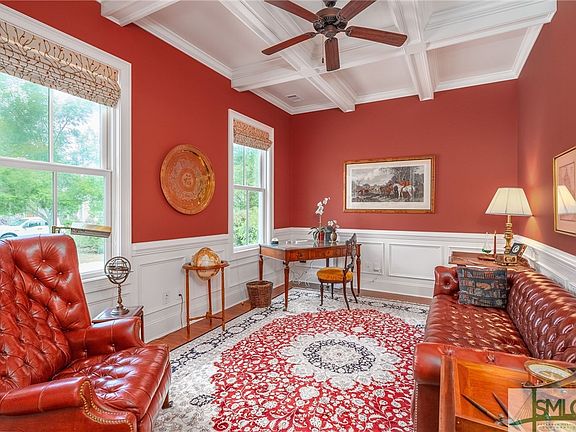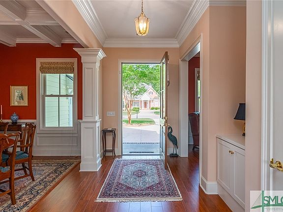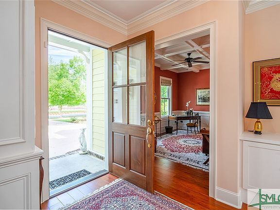 Don’t want to wait for a new build? This 3,782 sq ft 2015 custom built home takes “It’s all in the details” to a whole new level. Enter and notice the study/office at the front of the house; coiffured ceilings, chair rails, built ins, multi-layer moldings, and bullnose corners. The thoughtfully designed first floor primary ensuite includes a jacuzzi tub, huge closet and walk in shower. From the great room 12’ double doors or primary suite French doors, you enter the screened-in porch where you can relax with a view of the pond. The kitchen’s 2 islands, both with sinks and disposals, high-end appliances, lots of storage including a unique spice and multi bottle wine rack is a cook’s delight. Boasting 4 bedrooms 3 ½ baths and primary down, there is plenty of room to spread out. Don’t miss the 2-car carriage entry garage/workshop area, bonus room upstairs and extensive storage areas. This home is for you! Schedule your tour today and start enjoying the Savannah Quarter’s lifestyle!