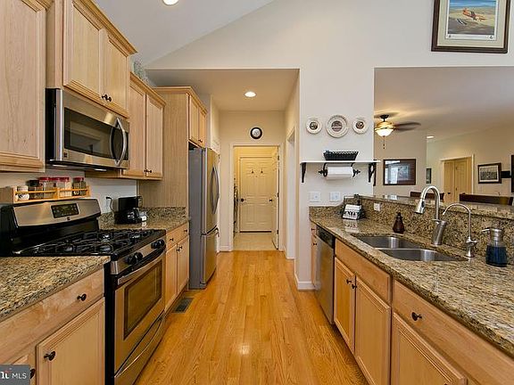 Single Level Living in a Gated 55+ Community. Open floor plan with cathedral ceiling. Kitchen w/Granite Counters & SS Appliances. All Hardwood Flooring and Tiled baths & laundry. Living Room w/Gas Fireplace. Tray Ceiling in Owner Suite. Attached Master Bath w/Large Shower. Brick patio w/Sunsetter Awning. Floored storage in attic. Shelves in garage. Many upgrades! Pond & Clubhouse. Ceiling Fans.