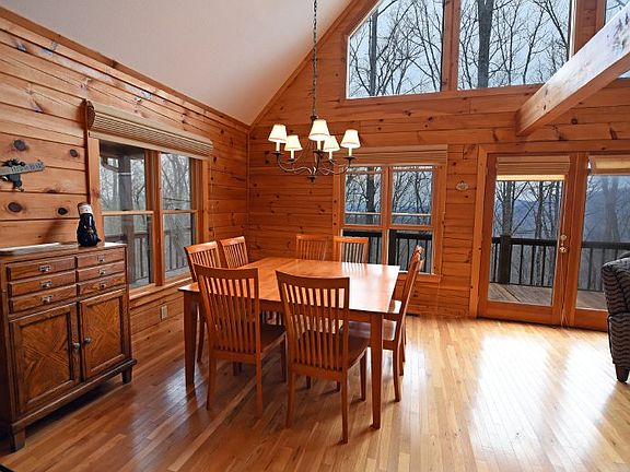 Really well kept log home just minutes from town with year round long range views, and some seasonal views that could be year round with selective cutting/trimming. Spacious great room offers lots of windows to enjoy the views, hardwood floors, stone fireplace, and cathedral ceilings. Master suite is upstairs and has an adjoining loft which could be 3rd or 4th bedroom. Fully finished lower level features huge family room, a smaller room intended to be used as 3rd bedroom but has no closet or window, and full bath. Walk out lower level to nice patio area, fire pit and picnic area. Porch or deck on all 4 sides, with 1 side screened in. Ideal location minutes to town, numerous golf venus, trout streams, and 15 minutes to Lake Chatuge or Lake Nottely! MUST SEE!