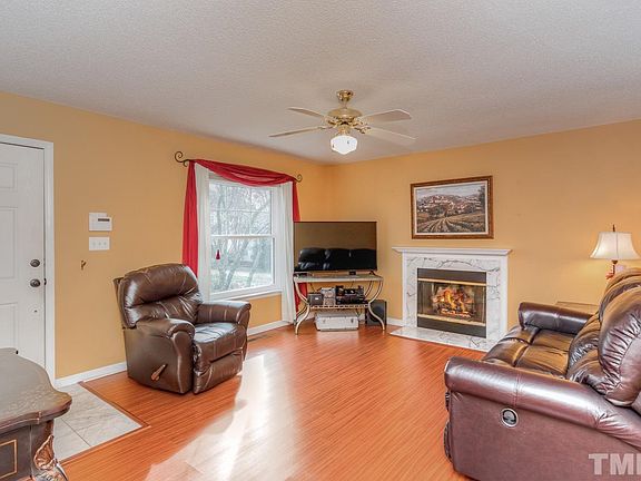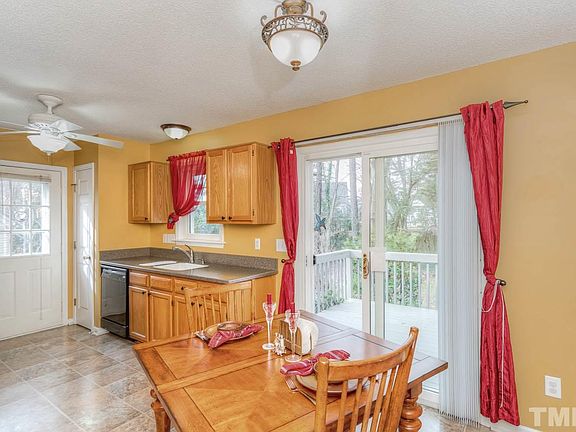 Charming 3 bedroom Ranch home in the heart of Holly Springs with fenced in backyard and situated on large, cul-de-sac lot. Spacious living room has cozy marble surround gas log fireplace and opens to the kitchen for ease in entertaining family and friends. Combination kitchen/dining room has attractive oak cabinets and solid surface countertops and leads to the deck overlooking the beautiful private backyard, complete with storage shed and work shed with electricity. Driveway can fit a full size RV.