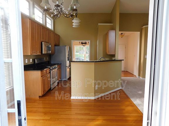 4 Bedroom in Convenient Cary Location Available Feb 1. Bright Open Floor plan with Windows Galore. Gorgeous kitchen with granite counters and stainless appliances opens to breakfast area and family room. Separate Dining Room. Three bedrooms on main level, 1st Floor Master, Upstairs is another huge bedroom with full bath. Washer & Dryer Included for Tenant Use. Hardwoods in dining and kitchen. Great flat, fenced back yard!