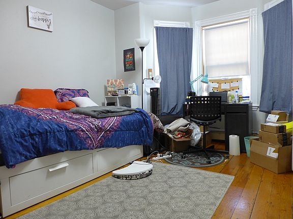 This charming apartment features a renovated kitchen with a breakfast bar, gas stove, and dishwasher, offering both style and convenience. The updated bathroom adds a modern touch, while on-site laundry ensures easy living. Enjoy a spacious backyard for outdoor relaxation. Located just steps from MCPHS, this home also offers free on-street parking, requires only a half-month security deposit, and allows one cat.