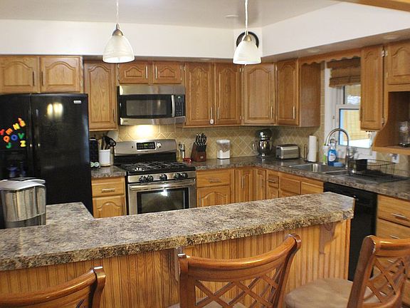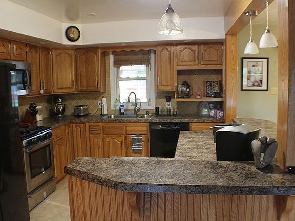 MAKE THIS HOME YOUR HAVEN - It's the perfect place to unwind with its spacious open floor plan and private 3-season sunroom. This brick ranch features oak trim, plaster walls and hardwood floors. CENTRAL AIR. Beautifully updated kitchen with oak cabinets, breakfast bar and recessed lighting - all appliances are included. First floor bath w/porcelain tile, vanity and tub/shower. Master bath is updated with ceramic walk-in shower. Enjoy the lower-level theatre room with new high-definition projector and new bar area, porcelain tile floor and recessed lighting. Integral 2 car garage. Large rear deck and shed. Enjoy the beautiful mountain views from this home which is situated on a pretty no-thru street.