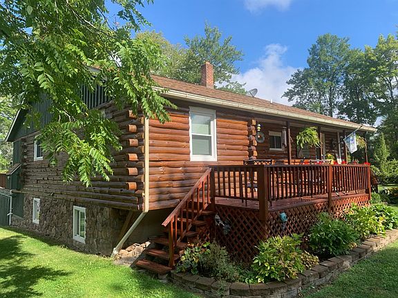 Lakefront - 280' of pristine waterfront property along Cincinnatus Lake which is a private lake. This totally updated Log Home features kitchen with granite countertops/stainless appliances, 3/4 beautiful Brazilian hardwood floors. 2 bedrooms/2 baths on main level. Views of the lake are awesome imagine watching all the postcard perfect picturesque sunsets from your own deck! There is an enclosed porch along the back of the house for extra living/entertaining space leading out to the trex deck. There are two docks to this property, an area to put your canoe or kayak into the lake and it's own private boat launch. One detached garage for your autos and a second detached garage for storage and an exercise room, the lower level of the home offers another two bedrooms/bath and family room - walk out basement. In-floor radiant heat, Ranai on demand hot water, new water system just installed. The home has a very inviting lake front presence including plenty of perrenial flowers, pear trees, blueberry bushes and generous apple orchid. Two parcels 3+ acres on the lake!