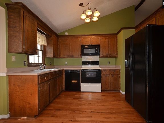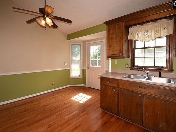 - Kitchen: Counter Tops-Formica, Eat In, Floors-Hardwood, Cabinets-Stained
