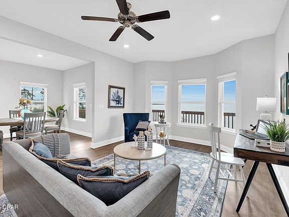 Its proximity to Tyndall Air Force Base combines serene waterfront living with convenient access to amenities, creating a unique blend of tranquility and vibrant community life. The home is designed to maximize luxury and comfort, with large windows ensuring a bright atmosphere that highlights the stunning outdoor scenery.