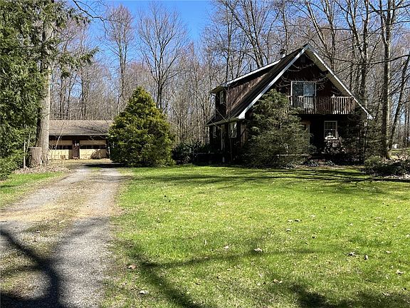 Enjoy a private getaway everyday with this adorable 3 Bedroom Gem. Has a detached 2.5 garage. A Balcony off main bedroom. Large Brick Fireplace. Hemlock board and batten siding. Newer electric panel. It needs some TLC but has very good bones.
