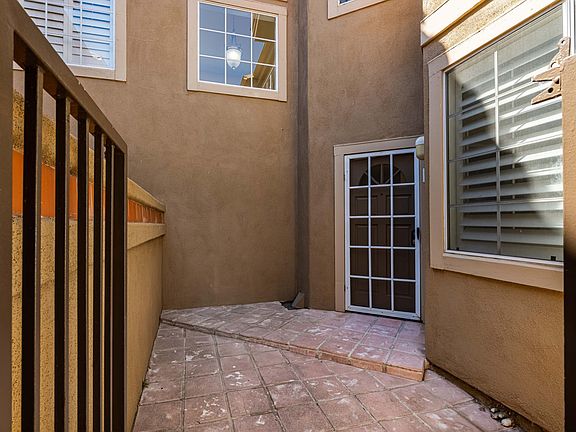 Highly desirable turnkey 2-level Northwood Villas condo with 3 bedrooms and 3 bathrooms. One bedroom and bathroom is downstairs - ideal for guests or an office. Northwood villas was built by Woodcrest homes and has a Mediterranean architectural style. This open floorplan home has vaulted ceilings in the living room, which has a tiled fireplace & custom mantle, a wall of windows and sliding door to the low maintenance tiled back yard, with its built-in BBQ. The upgraded condo has gorgeous hardwood flooring, ceiling fans, and plantation shutters. A convenient inside laundry room is downstairs. The dining room has a custom light fitting and a wall of mirrors. The remodeled kitchen with its grey quartz countertops with contrasting full white subway tiled backsplash, an abundance of white shaker cabinets and stainless steel appliances, including gas stove, will delight all family chefs whipping up meals. The light and bright eat-in kitchen, with all its windows, is a sunny place to enjoy meals. The backyard can be accessed from the eat-in kitchen area. The master bedroom suite with cathedral ceilings, a raised oval tub, dual closets with mirrored closet doors and double vanities, and the other bedroom, are upstairs. Direct-access two-car garage and plenty of guest parking nearby. Northwood Villas is bordered by Trabuco Rd, Roosevelt and Jeffrey Rd. Close to shopping and award-winning schools. As a resident, you will get to enjoy the neighborhood pool, all the incredible green parks, picnic areas, and playgrounds found in the Northwood area. Sorry, no animals allowed. A fridge, washer & dryer are NOT included.