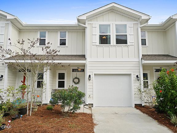 Don't miss this terrific offering in the cozy Waterfall community! Enjoy the best of both worlds: the peace of living slightly tucked away from the hustle and bustle and the convenience of being located close to the sugar white sands of Panama City Beach, grocery stores, restaurants, shopping, and more! This wonderful townhome is fantastic as either a primary residence or long-term rental income producer. Super-efficient floorplan 3Bed/2.5bath downstairs has an open living, kitchen, and dining room with a half bath. The kitchen features stainless-steel appliances, 3 cm granite counter tops, tons of counter space, storage, and deep double sinks. Upstairs you'll find a nice size master suite with walk-in closet, double vanity, and separate shower. There are two additional ample sized bedrooms that share a hall bathroom with a shower/tub combo. Laundry is also conveniently located upstairs. One car garage, adequate backyard, smart home capabilities, and keyless entrance round out this offering. The community features a beautiful resort style pool & clubhouse and is a short walk, bike, or drive to everything the Emerald Coast has to offer. The beach life is waiting for you!