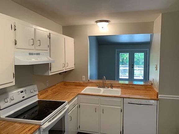 Newly painted duplex with large backyard and a deck with french doors off the living room with vaulted ceilings and a wood-burning fireplace. The kitchen has new butcherblock counters and comes with dishwasher, oven, stove and refrigerator. There is a full laundry room, not just a laundry closet (machines not provided). The driveway has space for two cars side-by-side, there is a storage shed in the backyard as well as a storage room attached to the home. Open House this Thursday, June 25th from 5-6pm Electric and Water are paid by renter, there is no gas utility. No smoking in the home or pets allowed.
