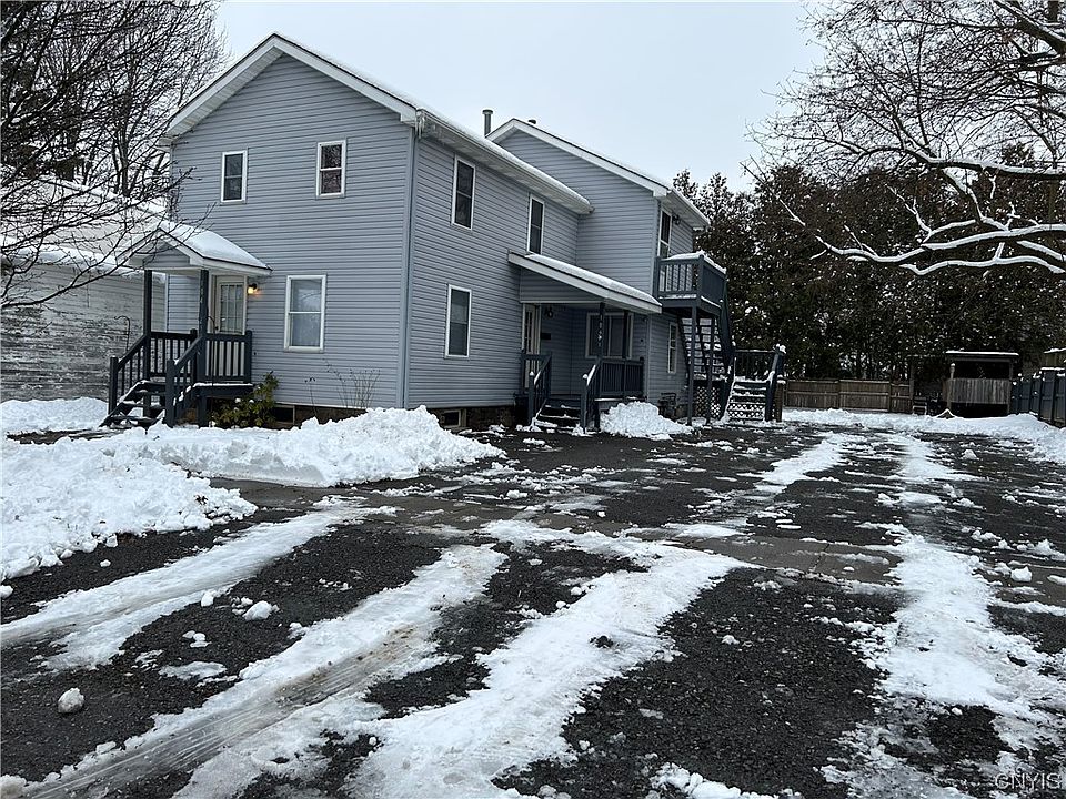 Upstairs unit is 2 beds, 1 bath, large living room and eat in kitchen/ dining area. Separate entrance/ exit leading to oversize parking lot. Shed has 2 units - 1 open for each apartment. Upstairs loft/ and lower shed area. Tenant pays own utilities, 2 furnaces and meters.