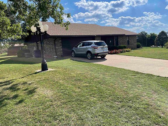 Sitting on the beautiful grounds of Velma Golf Course the 1635 SQFT this home is a beauty. Built in 1985 to withstand weather the open concept home is roomy and has a unique plan for any size family. The kitchen bar is the only division between kitchen and dining area which is connected to the large living room. What I like best about the home is the wood burning fireplace and no hall, so the entire space is used for living. Off of the living is a back door area that has been tiled and has a corner closet for storage.The screened in back porch takes you to the cellar in those times for needed for safety. Main bedroom at present contains a king size bedroom suite with room to spare (not included in price), the other bedrooms are nice size as well. June of 2021 a new shingle roof was installed on the home and the outbuilding. Modern colors run throughout the house with carpet recently replaced. The tile in kitchen area comes in a neutral so you can decorate with many colors. Look in the double garage with an attic and see the storage space on one side to utilize. Come take a look at this one of a kind home.