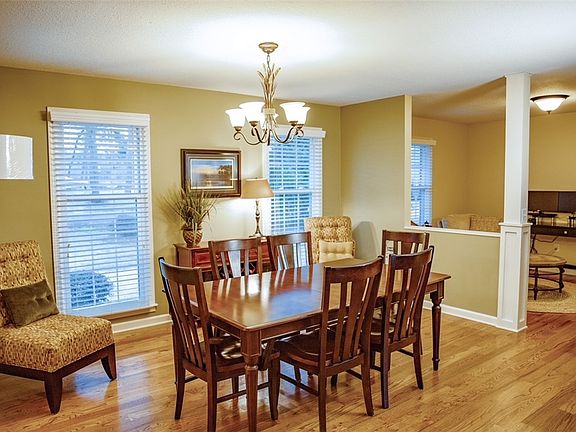 Wonderful, open floorplan with hardwood floors throughout living areas. Kitchen, dining and living rooms all open to each other to offer a great entertaining space. Views of the private, fenced in back yard and deck are visible from front entry. Wonderful living area with fireplace . Kitchen has new cabinetry and countertops. Laundry and two car garage just off kitchen area.