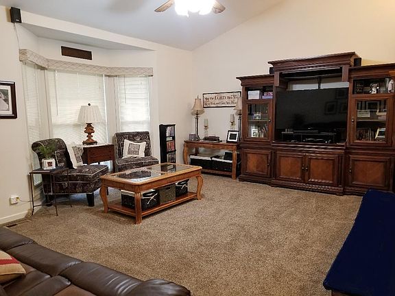 Beautiful home in desired subdivision, no HOA vaulted ceilings in LR/fireplace, 2nd master over garage w/full bath, den w/wood burning stove, granite counters in kitchen & new backsplash, walk-in closet in master, large lot in cul-de-sac, XLG driveway, newer deck, 2 storage bldgs remain, playground opitional